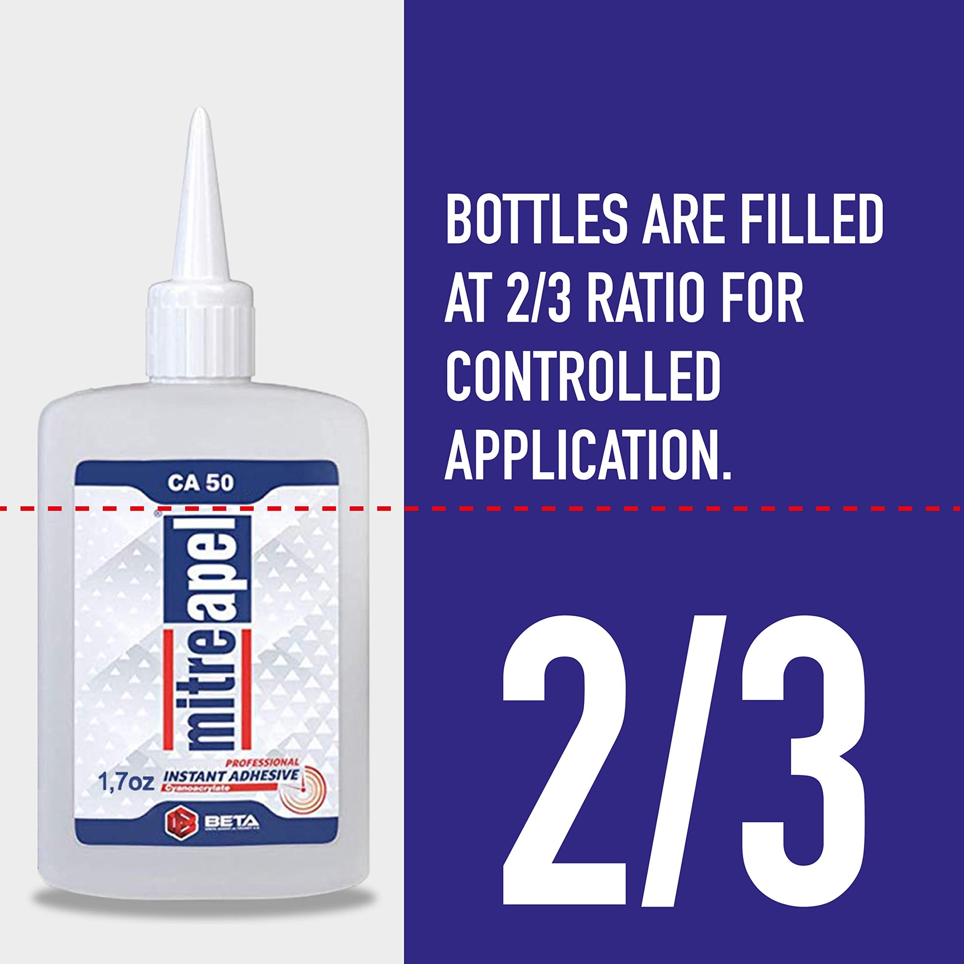 MITREAPEL Ca Glue with Activator (2 x 1.7 oz - 2 x 6.7 fl oz), Cyanoacrylate Super Glue for Plastic, Glass, Leather, Ceramic, Woodworking, DIY, 3D Printing - Instant Bond - 2 Pack